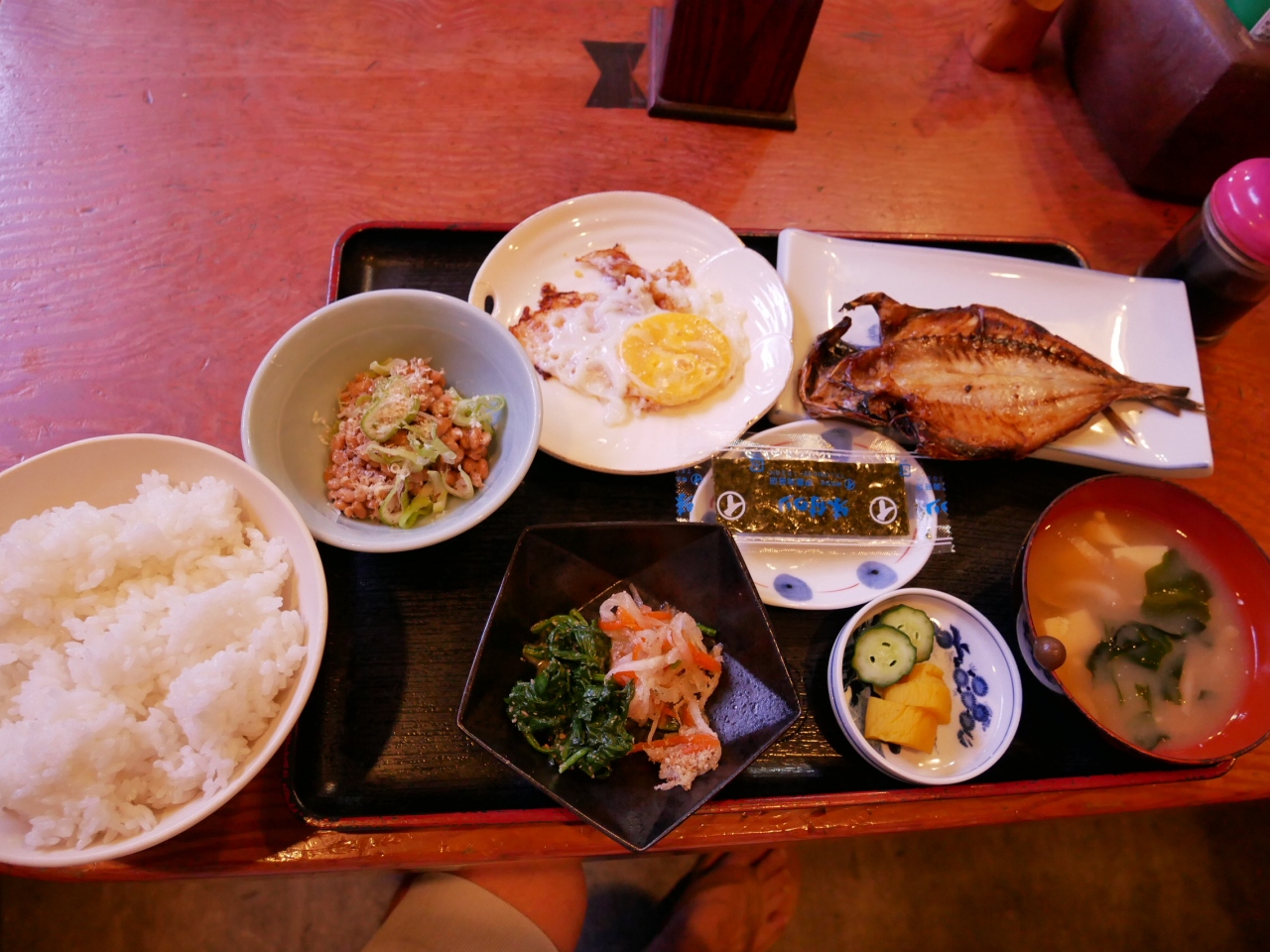 らんぷはうすで下田の定番モーニング、鯵の開き朝定食