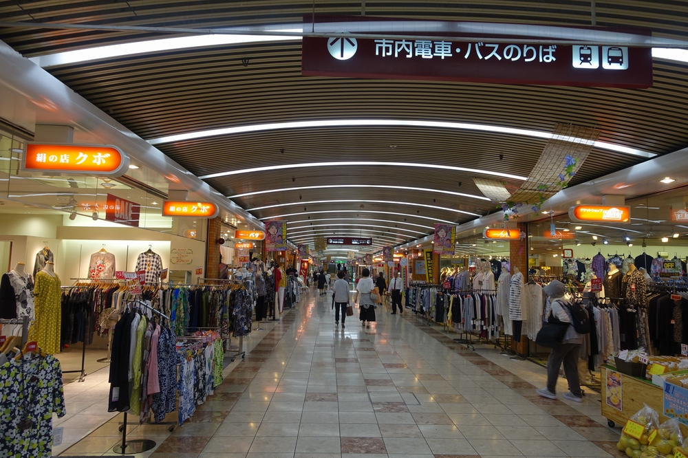 松山市駅、高島屋、銀天街をつないでいる地下商店街。それぞれの間を行き来する地下連絡通路的な存在にもなっていて人通りはそれなりにあります。雨の時などは特に便利かと。