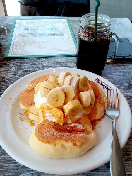 ワンドリンクをオーダーする必要はありますが、キャラメルバナナパンケーキが3枚で400円とお得。