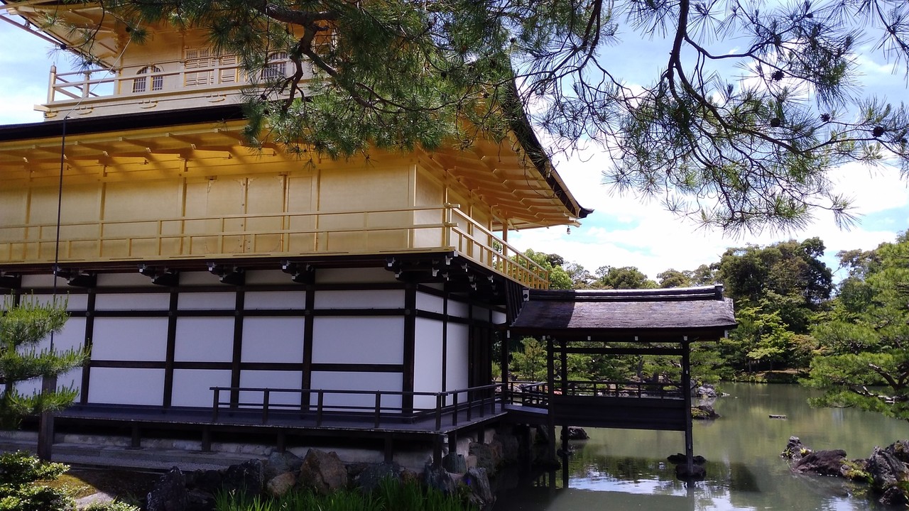 京都観光の定番、金閣寺へ、金箔がまぶしすぎ