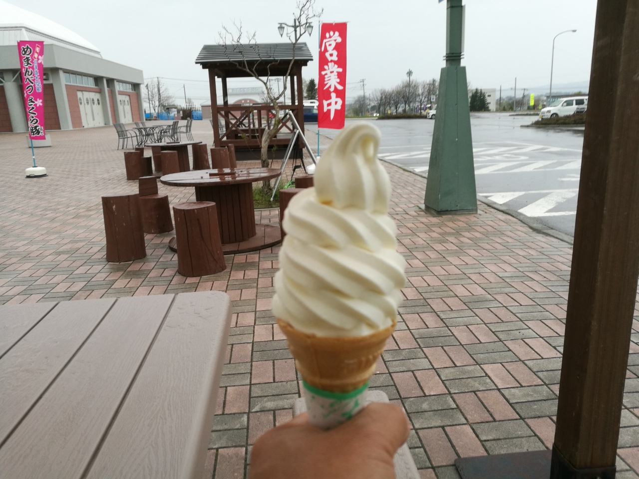 女満別空港に向かう途中にあった道の駅で、目の前にメルヘンの丘という地平線が身近に感じられる丘陵地があり、夕陽や四季折々に見せる風景が人気のフォトポイントになっているようです。周りの食事処がなかったので食事のために立ち寄ったのですが、6時閉店の10分前だったので、チーズソフトクリームを食べただけで買い物もしませんでした。