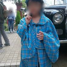 入ったら直ぐに民家の駐車場的スペースがあり、玄関の前に衣装が幾つか並んでありました。