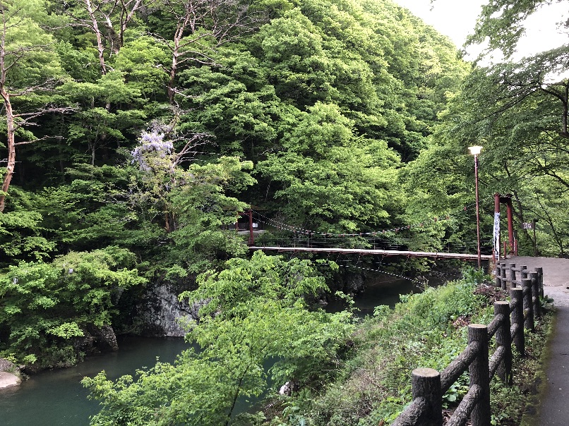 朝早く目覚めたので、昨夜近くを通って目星をつけていた小原温泉の共同浴場に行ってみた。国道113号線から谷底に降りて行ったところに立派な温泉街がある。さなが白石の奥座敷といった雰囲気。共同浴場の岩風呂を目指したが、朝早くには営業していず残念だった。川向かいのかつら湯へも釣り橋が老朽会sていて渡れずじまい。きっとリベンジしたい。