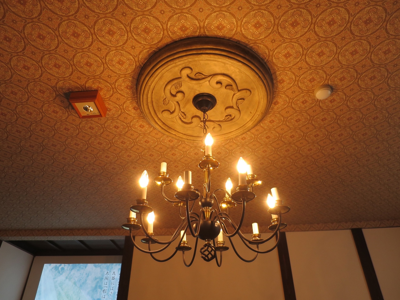 旧三省銀行は、肥前さが幕末維新博覧会の葉隠みらい館として営業中でした。明治15年に建てられたという建物の外観は、切妻屋根に漆喰の壁、正面に並ぶ銅板の窓。町屋らしい奥行きのある館内の中央部は吹き抜け、2階にはシャンデリアが輝いているといった面白い造りで、近世と近代の狭間といった雰囲気でした。”葉隠”といった言葉には似合わないな(笑)。