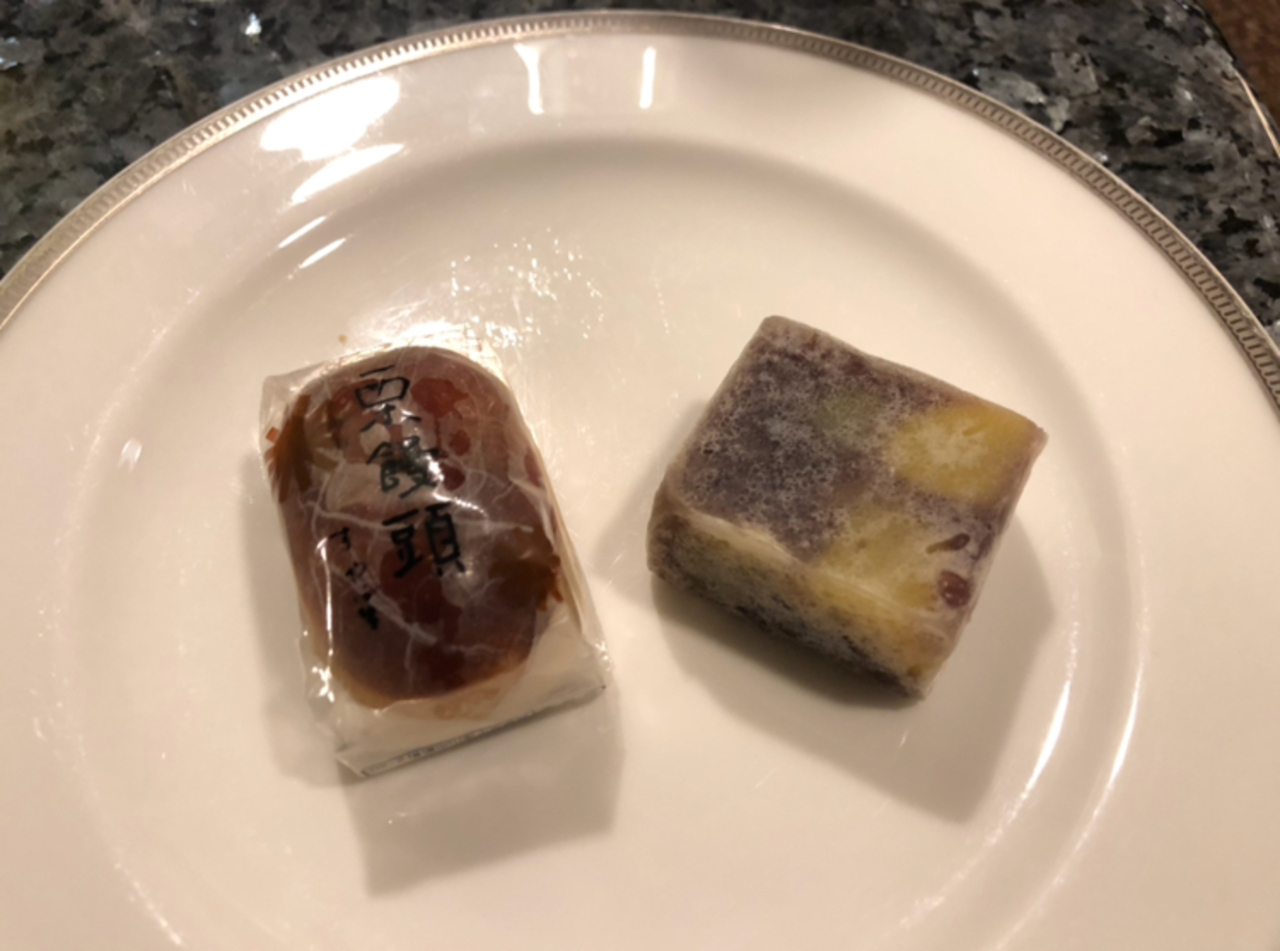 まさかこんなところで買えるとは思っていなかったので、次はオンシーズンに立ち寄りたいです。栗以外の季節でも何種類かは栗モノの販売があり、せっかくなので栗まんじゅうときんつばをいただきました。