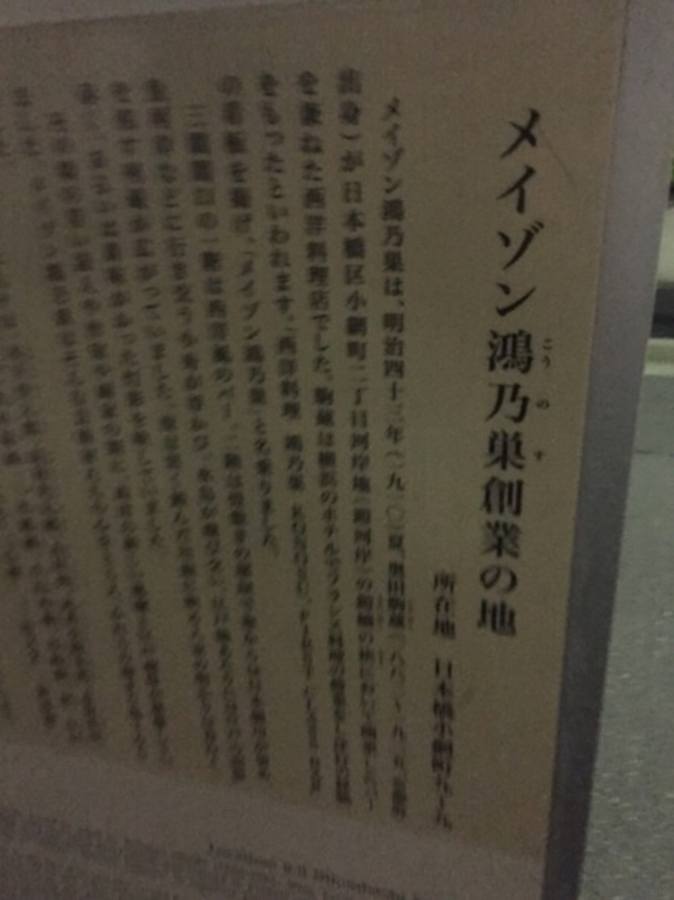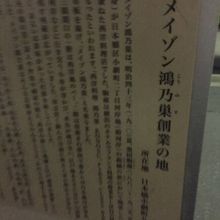 この説明版はバーを兼ねた西洋料理店であるメイゾン鴻乃巣の創業の地で、創業1910年とあります。