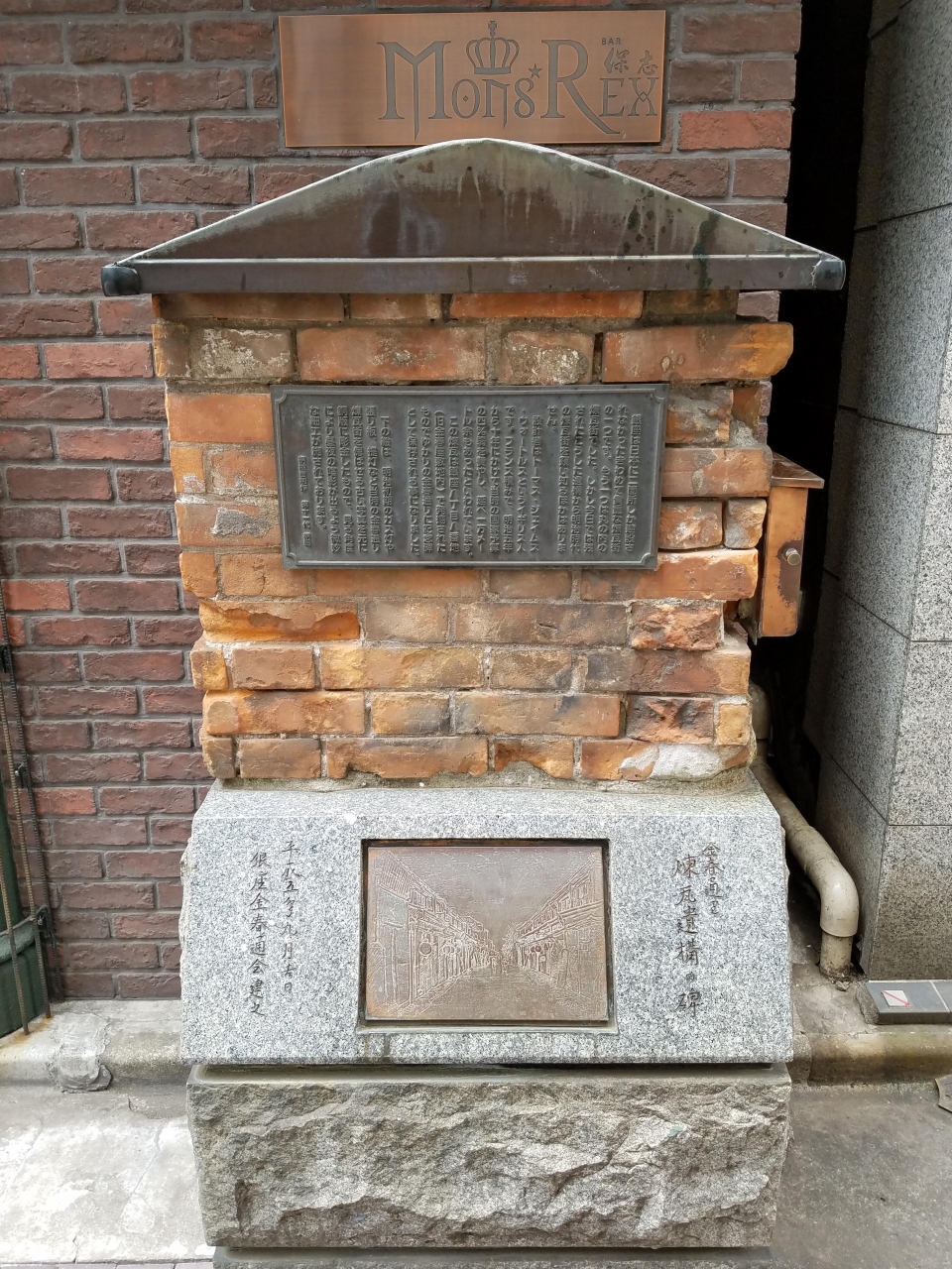 御門通りから金春通りに入ったところに、かつて明治時代にこの界隈が煉瓦街であったことを伝える石碑があります。関東大震災で消失し記録がほとんどない中、当時の姿を銅板に刻んでいます。人通りの少ない裏通りにひっそり佇みながら、銀座の歴史を伝える貴重なモニュメントです。