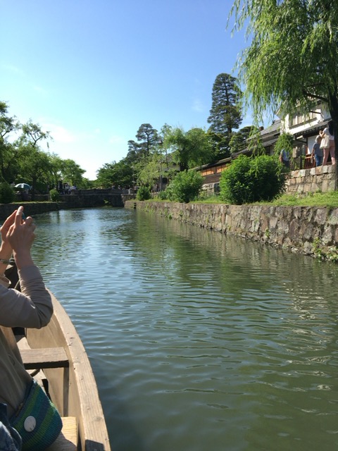 倉敷美観地区の川を、船頭さんのガイドを聞きながら