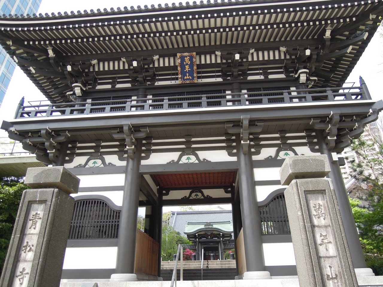 増上寺から歩いてすぐの場所、愛宕神社からも近いです。都会のど真ん中というような高層ビルが建ち並ぶ通りにあります。曹洞宗江戸三カ寺の一つに数えられた古寺だそう。立派な山門があり、本堂は近代的なデザインでした。