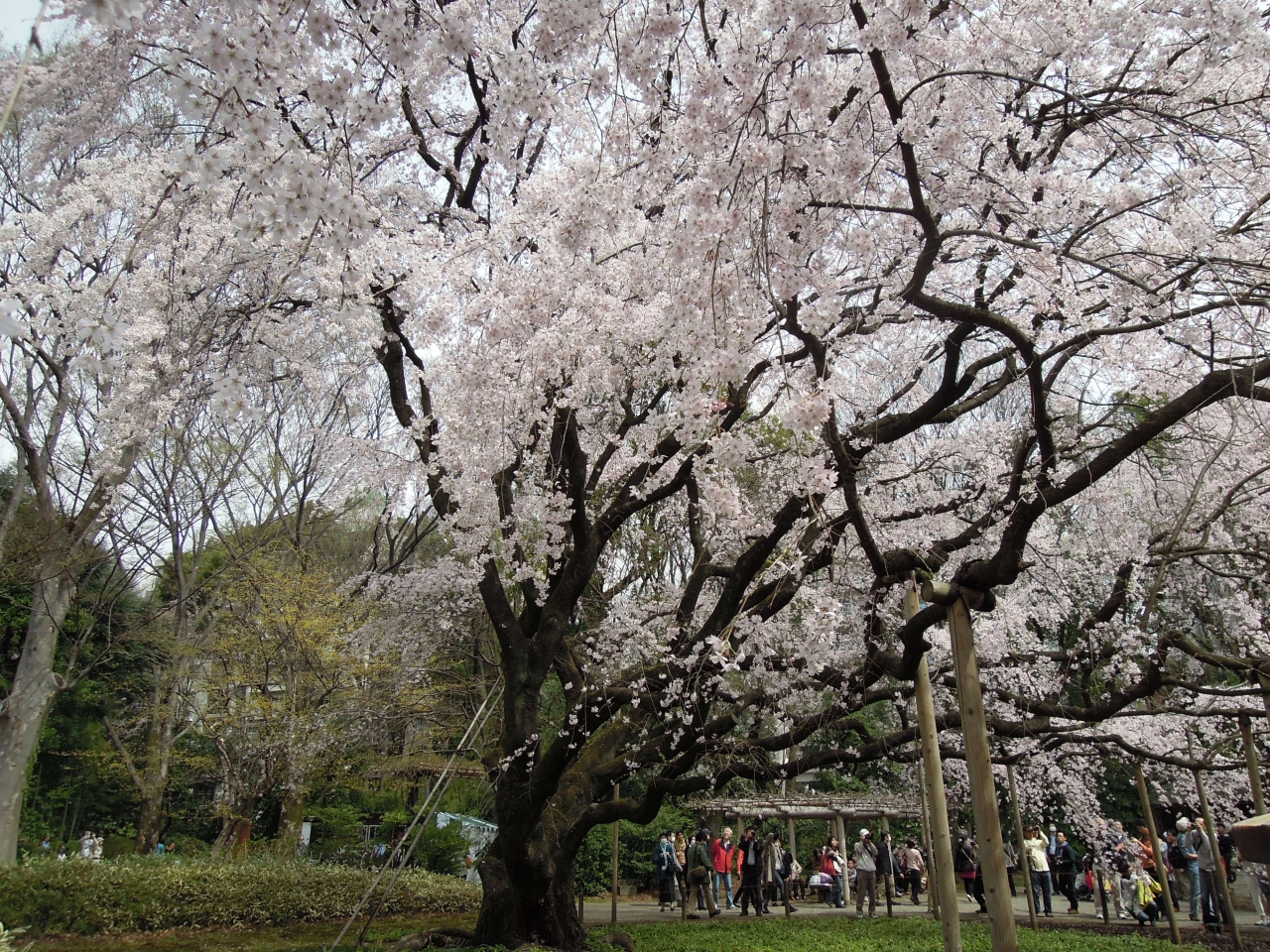 正門を入った目の前にそびえる枝垂れ桜が有名な六義園。それはそれは美しく立派です。高さ約15メートル、幅は約20メートルに及びます。見頃の時期、休日には入るまでに塀沿いに列ができるほどです。並んででも一度は見る価値があります。夜桜のライトアップも行なっています。