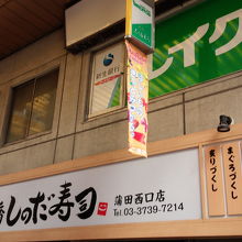 東急やJR方面から商店街に入ってすぐ目に入るお寿司屋さんです。