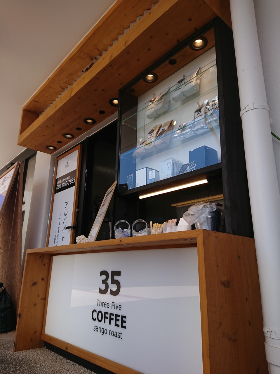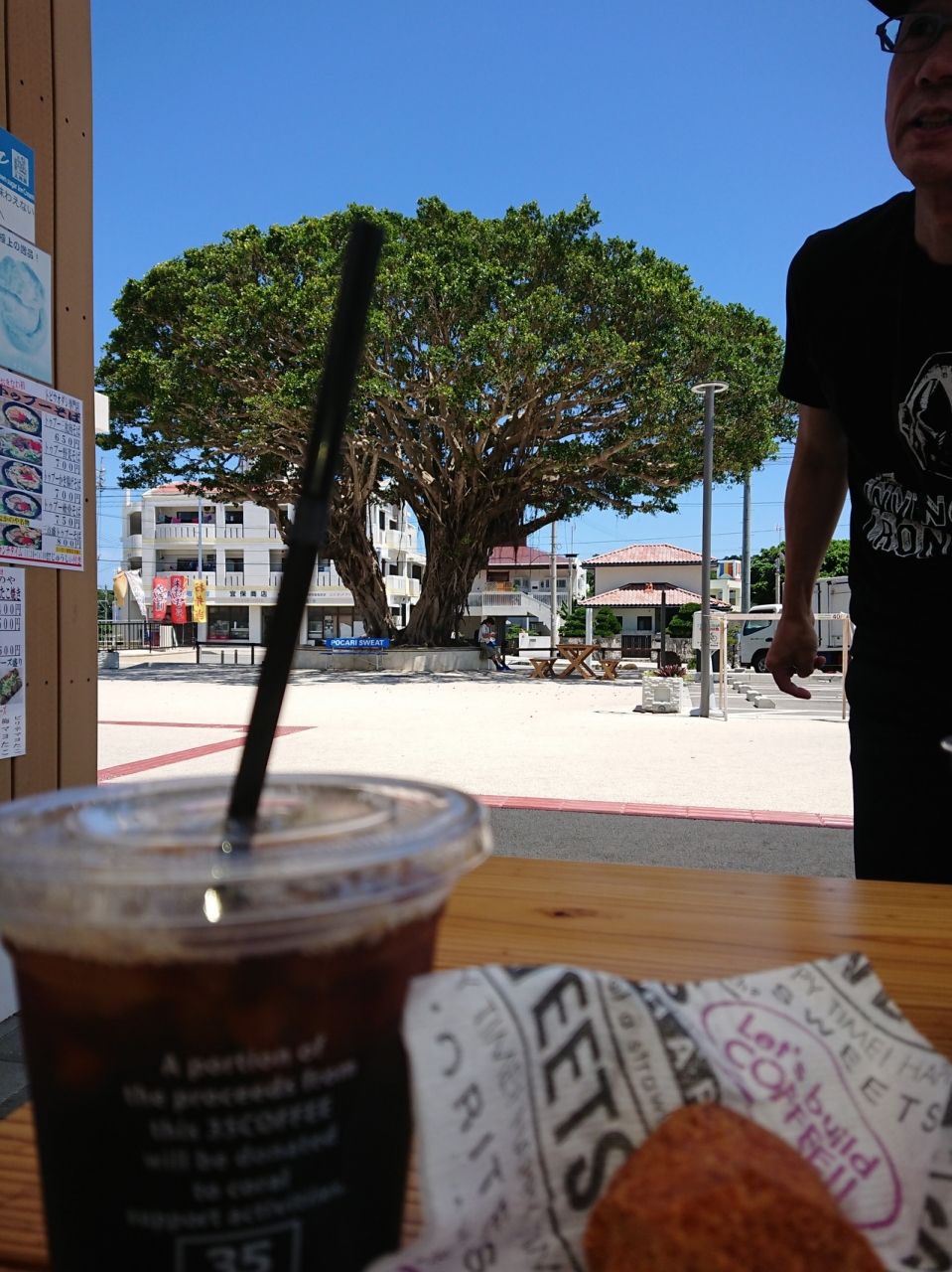 昨年今帰仁城跡の駐車場近くで飲んだ『35coffee』がとても美味しかったので今回は《やえせ南の駅》内にある店舗を訪れました。6店舗位のお店が並び大きなテント下で飲食できる道の駅でした。35coffeeはアイスで頂きました。香りが良くてスッキリした味わいが大好きです。