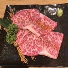 この日びっくりしたのは1枚の大きさが大きくてハサミで切りながら焼くお肉でした。骨付きカルビ以外では初めての経験でした。