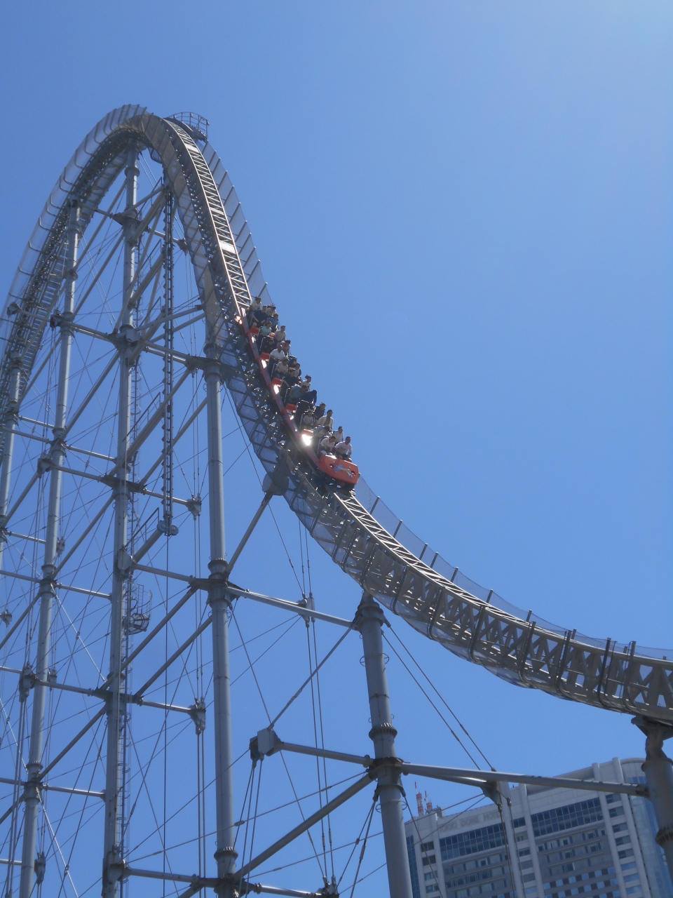 東京ドームの側にある都会のど真ん中の遊園地です。地下鉄の駅を降りると、ジェットコースターの走る音と叫び声がきこえてきて驚かされました。ゴールデンウィークだったけど、一時間ほど待ちました。敷地は狭いけど立体的で狭さを感じさせなかったです。