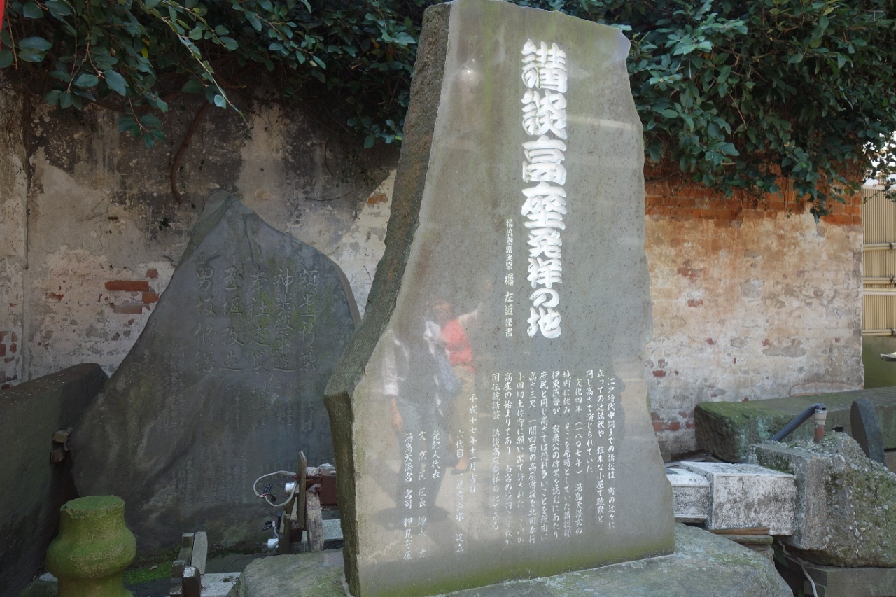 湯島天満宮を訪れた際、境内にこちらの碑が有ったので立ち寄りました。講談師で人間国宝の一龍齋貞水氏が講談の高座発祥の地とされる湯島天満宮境内にその由来を示す記念碑を建立したもので、碑文には高座発祥の経緯が書かれていました。