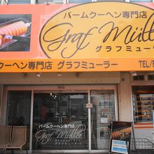 和歌山駅からお城まで歩いてゆく途中で見つけたお店、焼きたてバウムクーヘンの看板に惹かれました。