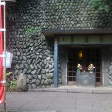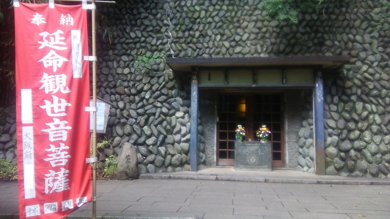 深大寺の前の道を西側に行き、花屋の前を登っていくと左に折れる遊歩道があり、本堂の明るさと対比されるようなうっそうとした感じ。その崖に穴が掘られていて、そこが延命観音。中を見ると大きな岩に観音様が彫られている。このまわりだけ、ちょっと異質な空間に感じられた。
