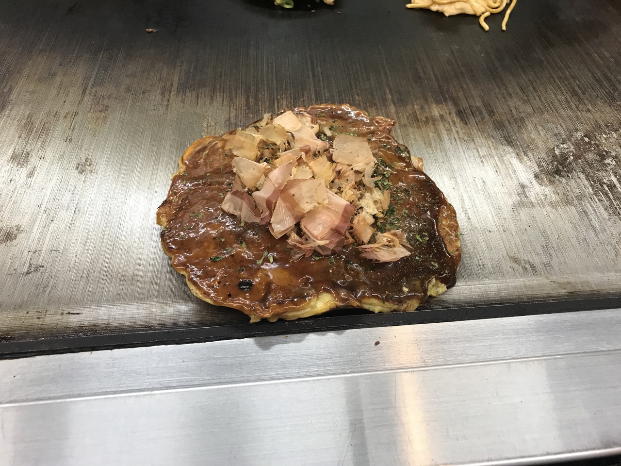 ここはあまりふっくらはしていないですが、味のあるお好み焼きです。価格も¥650と安いですよ。