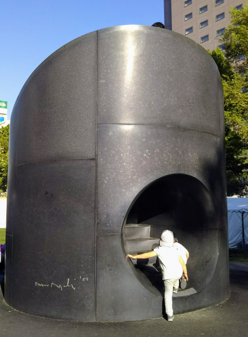 大通公園の9丁目にある黒い不思議な渦巻きの滑り台「ブラック スライド マントラ」はイサム・ノグチの作品です。