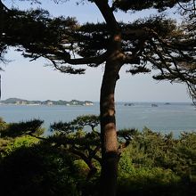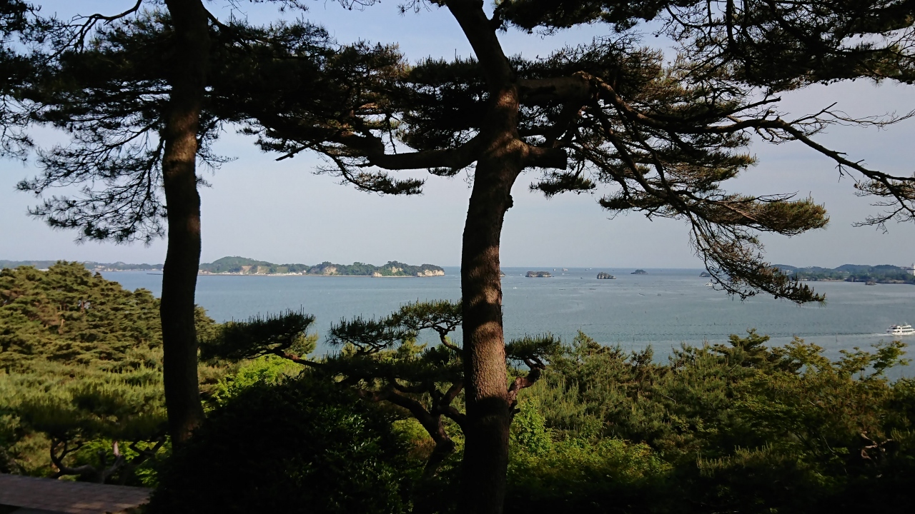 こちらも高台になっていて、松島を見ることができます。観光の中心からは離れていて徒歩では遠いからか、人はまばらなのでゆっくりと景色を眺めることができます。行きかう観光船が見えました。駐車場に車をとめて少しのぼっていくとたどり着きます。