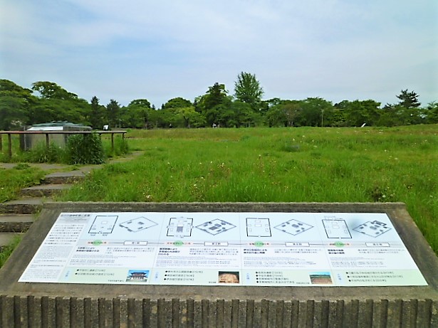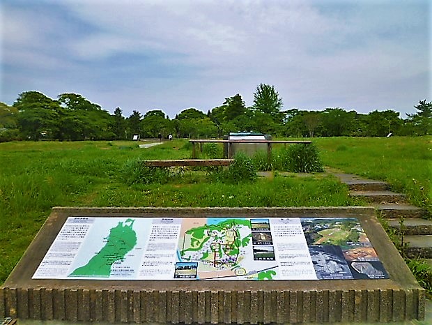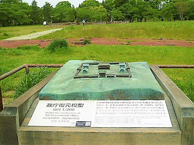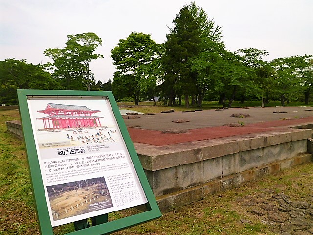 国の特別史跡に指定されている/東北地方の人?は馴染みがある`多賀城跡`にやっと来ました。先ずは[政庁跡]を訪ねました;正殿/後殿/南門/東西脇殿の復元図があって大規模な政庁を! でも今は新緑の丘に`石段/礎石`が点々と、。遠い昔をイメージして;`仕官`なったら外郭南門の坂を登ってから(メインストリート)正殿を見上げてが/振り返ると田んぼが生き生きと! でも、あるいは後殿の裏門からそっと,(^o^) リフレッシュでした。