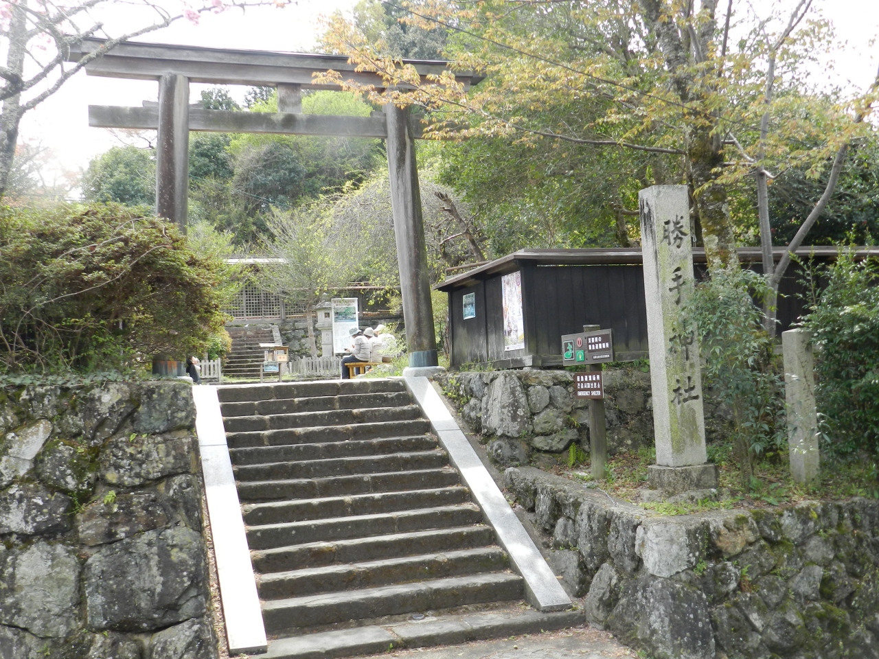 吉野山山上へ上る街道と如意輪寺、後醍醐天皇陵への分岐点でちょうど中千本の地に鎮座する神社。勝手とは勝手口で入口を意味し、その字面から勝負事や戦の神として武門の尊崇を受け又吉野山の入口に位置することで山口神社とも言われたそうです。境内には義経の妻女”静御前”が舞を見せた舞塚が残っています。創建年代は不詳ですが相当の古い歴史がありそうです。吉野山には古い歴史と由緒ある神社仏閣が立ち並んで信仰の山だとしみじみ思います。