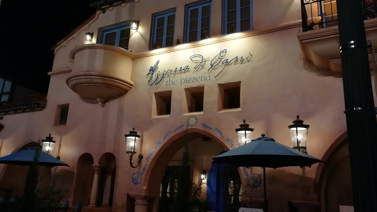 店内のテーブルの配置や間隔も贅沢でゆっくりできますよ。アトラクションやライドに追い回されない日は、ぜひここで美味しいピザ食べてください。期間限定であるスイーツピザはあったら必食です