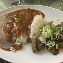 お昼時にお店の前を通り掛かり入ってみることにしました。カレーはトッピングの種類が豊富で迷ってしまいます。トッピングは味噌漬け豚焼きにしました。味噌が香ばしく、歯ごたえのある豚肉はご飯によく合います。カレーのルーは甘口で後からピリッとした辛さです。まずまずの美味しさです。