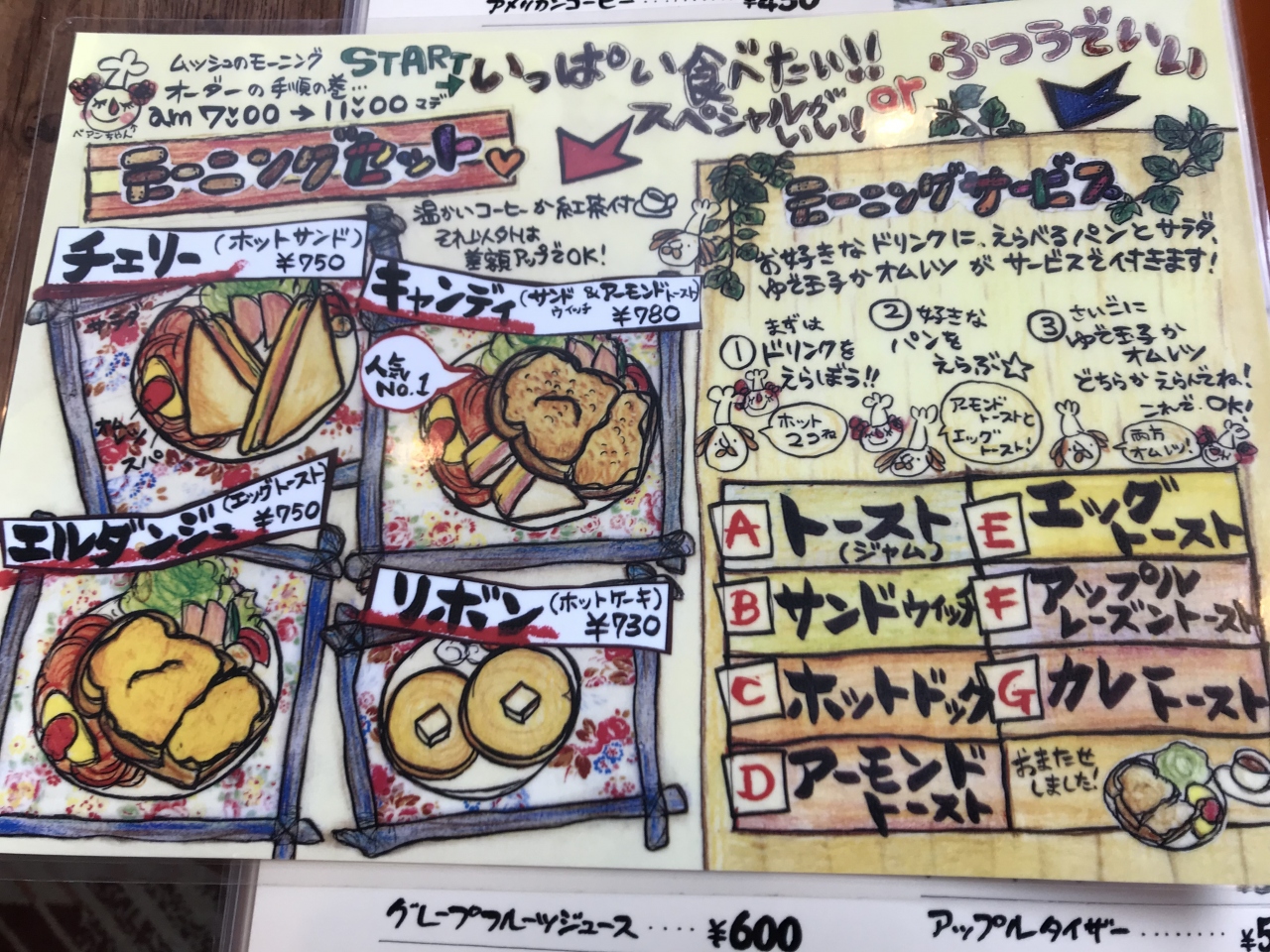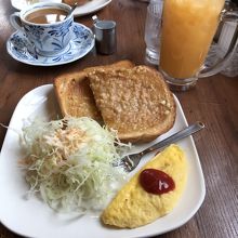 ドリンクの料金でトーストとサラダとゆで卵かオムレツが付いてくるので
