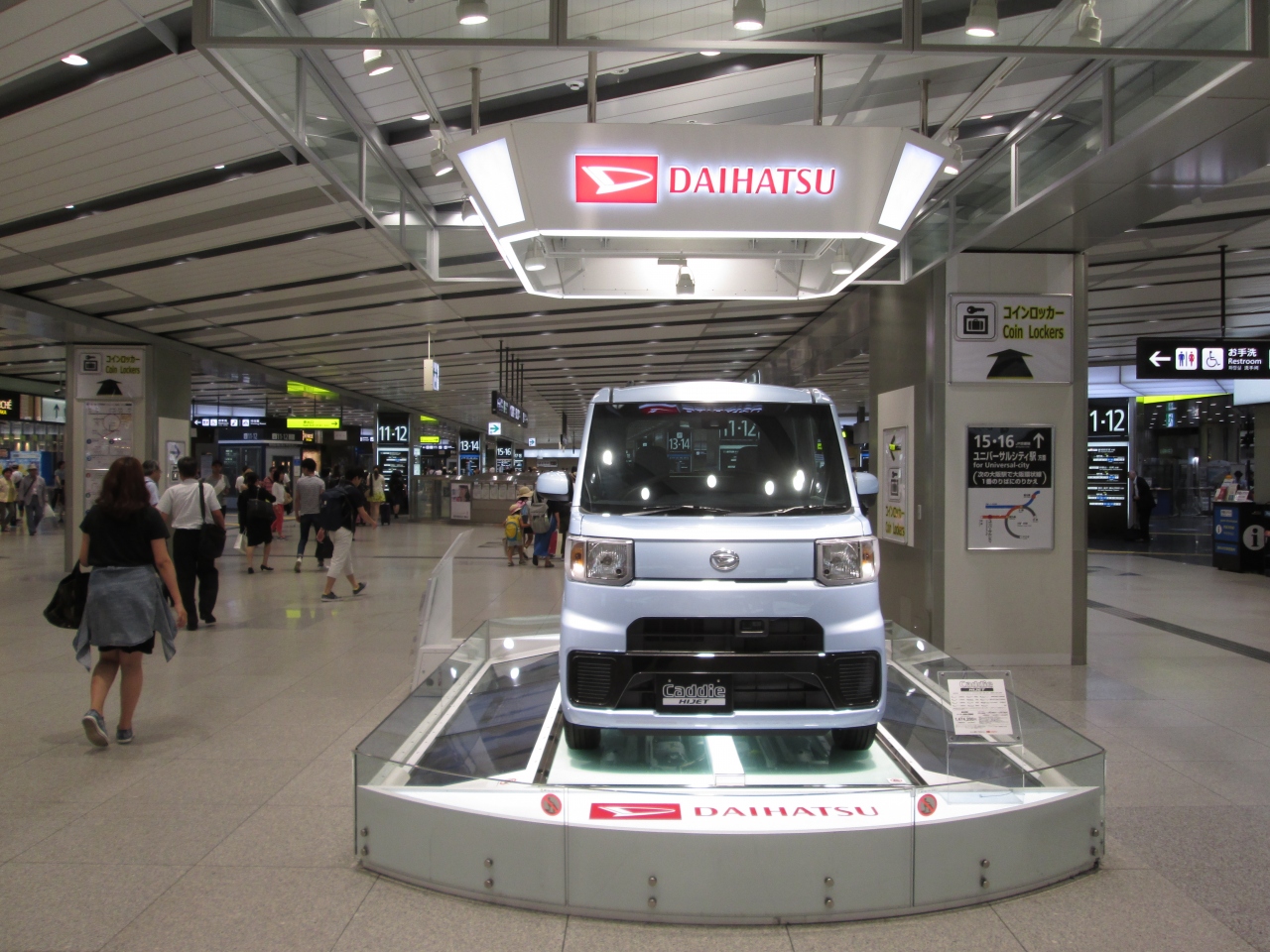 大阪を代表する駅ですが、在来線と新幹線の改札口の間に新車の展示を行っていました。羽田空港の展示車は近くにスタッフがいて、ドアを開けたり、運転席を確認できましたが、こちらは展示のみでした。駅構内のしかも改札と改札の間にどうやって入れたのか分からない新車が置いてあったのは驚きました。