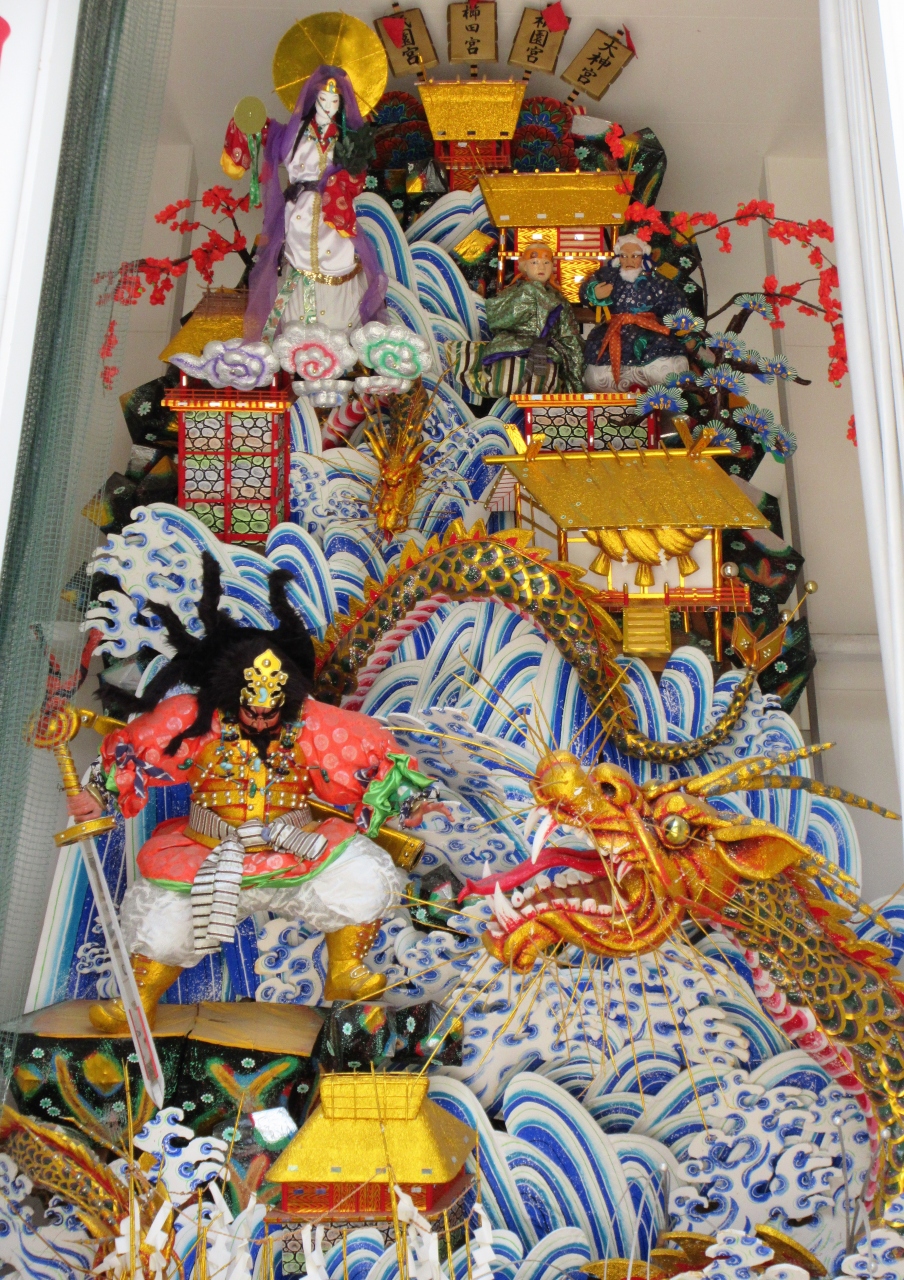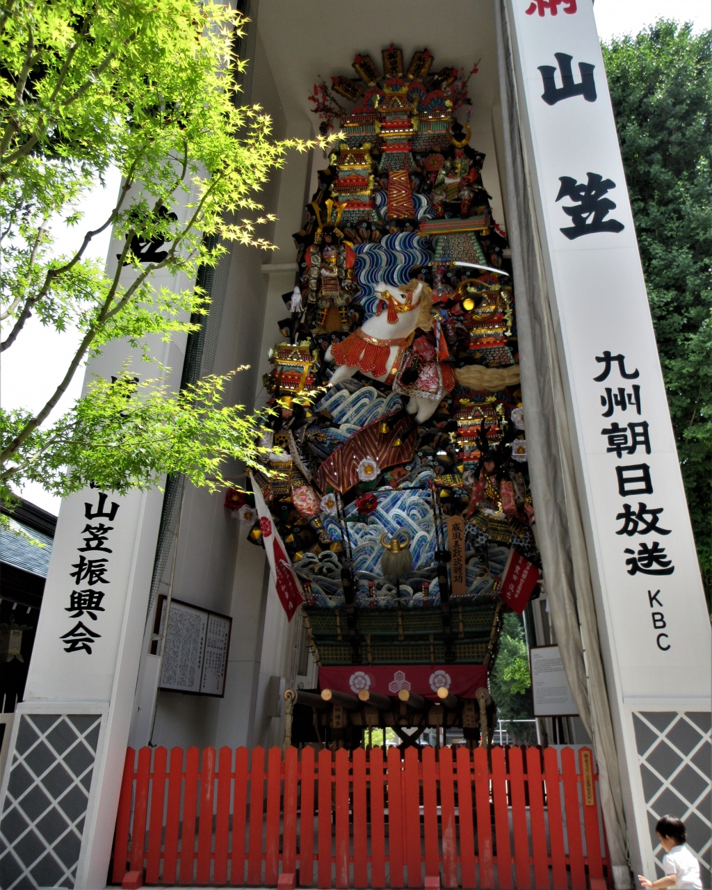 境内には7月1日から15日間にかけて行われる祇園山笠の飾り山笠が展示してあります。説明の絵を見ながら山笠を見ると他のいいです。