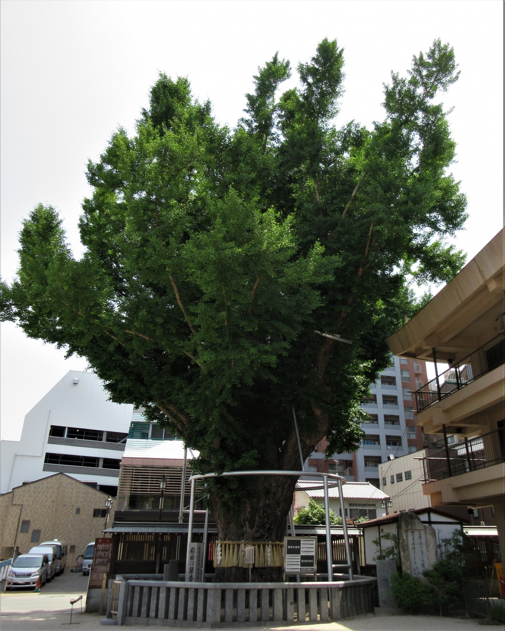 大きな銀杏の木が楼門のt格や南神門の側、飾り山笠の横には夫婦銀杏の木もあります。
