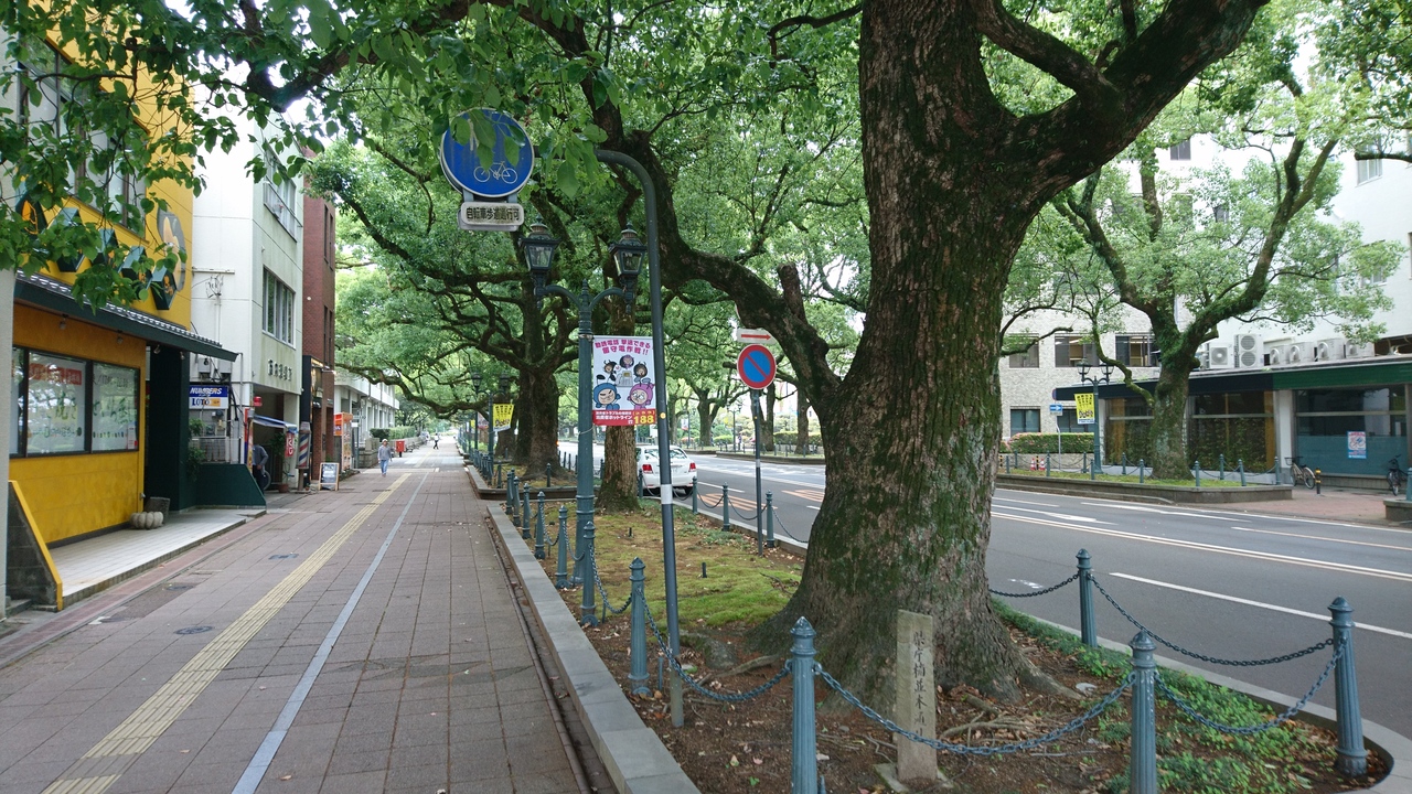 宮崎県庁へ行くときに通った宮崎県庁前楠並木通りは立派な楠が道路沿いに植えられてとても気持ちのよい道路です。歩道も広くて歩いていて心地いいです。人通りは少ないのですがポツンと一軒、宝くじ売り場がありました。なんと1等6億が出ているというから驚き。