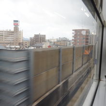 高架上には途中駅も設けられており、ホームは高架橋の中に納まっています。在来線に対する新幹線の大きさを物語る光景です。