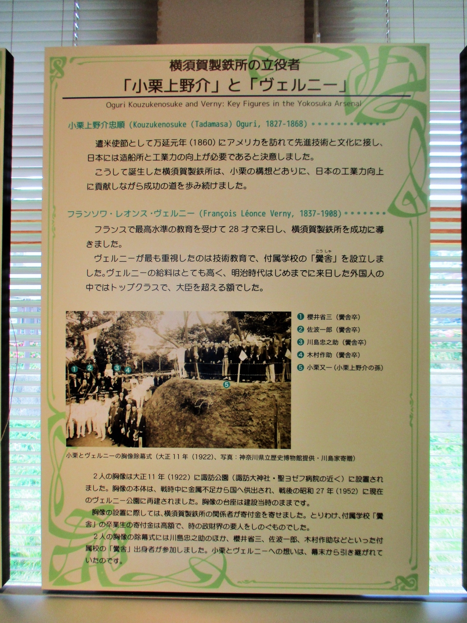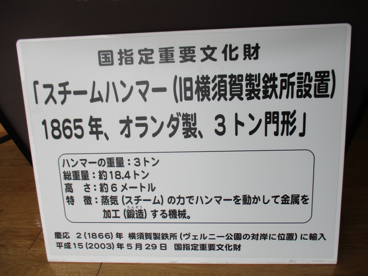 幕末、横須賀製鉄所建設に尽力したフランス人技師ヴェルニーにちなんで名づけられた公園内にある記念館で、横須賀製鉄所で実際に使われていたスチームハンマー等が展示されています。