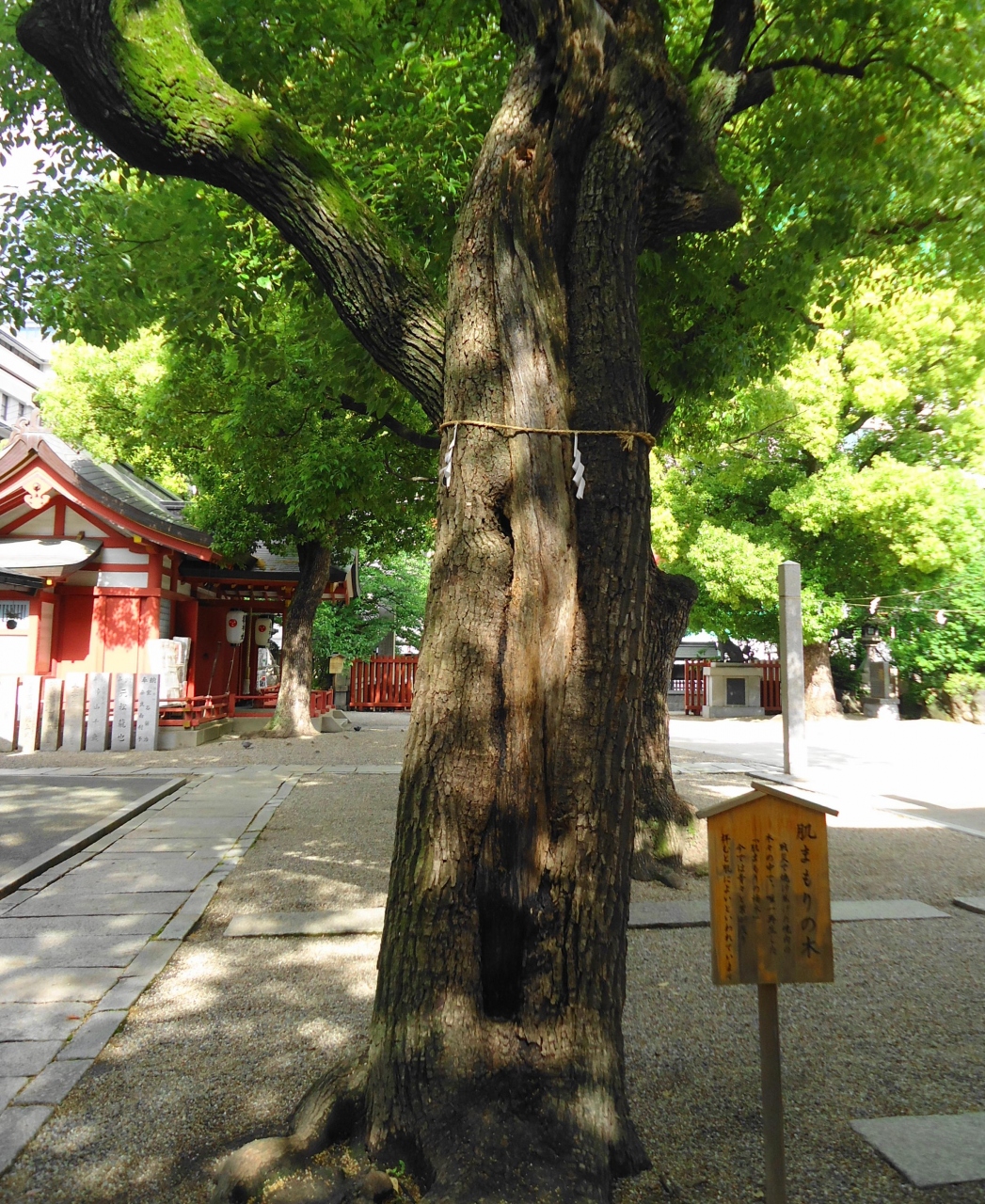 クスノ木の御神木は「肌守りの木」と呼ばれ、拝むと肌によいとのことで、触れてパワーを頂きました。