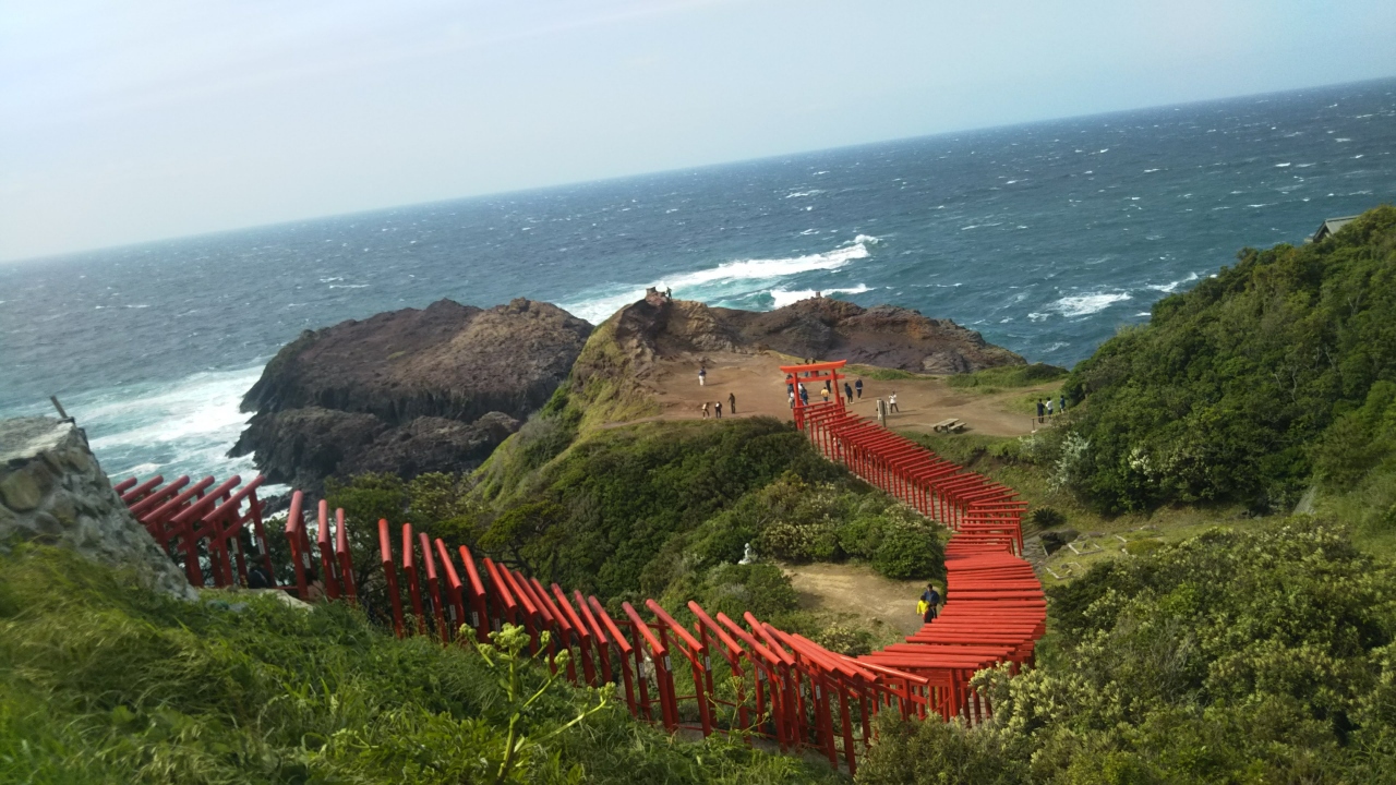海沿いに鳥居が立ち並ぶ姿と、強い海風に潮が飛ぶので、なかなか面白いところでした。