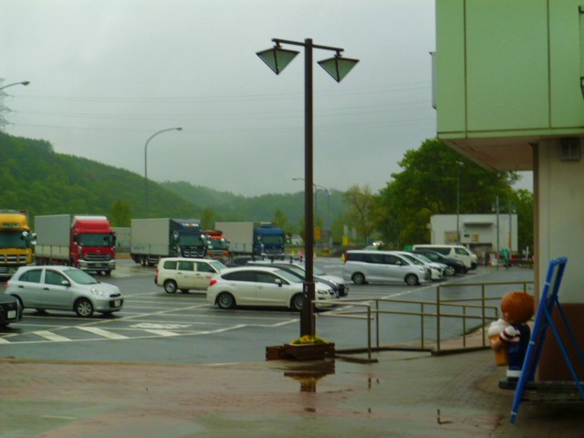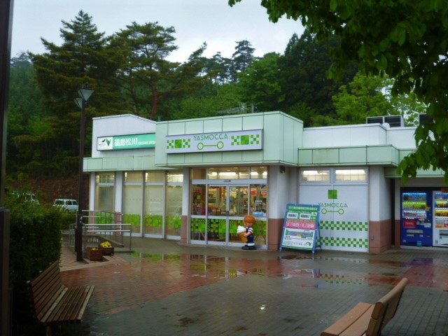 GW過ぎに東北道(下り線)を走行していると福島県から雨が! 安達太良サービスエリアは混んでいましたので[福島松川パーキングエリア(PA)]を利用しました。駐車場はほどほど(?)の広さでサービス施設の前に停められました=濡れずに済みました。食堂付きの売店はお土産品も豊富!で、つい##饅頭を買ってました(^^)。PAの利点はトラック運転者さんが!;小型乗用車は空いてましたよ。