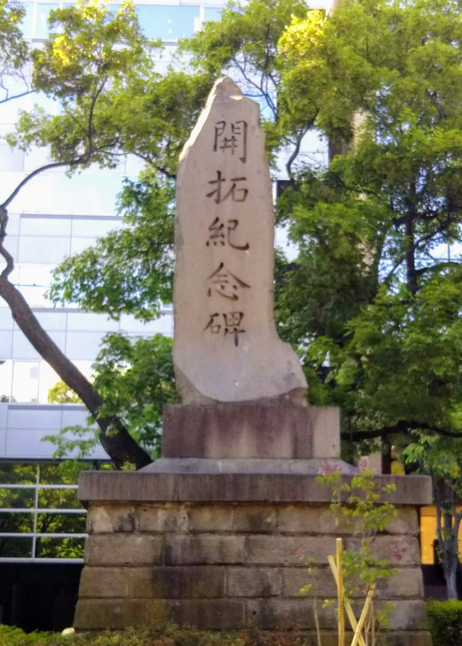 大通公園には記念碑や彫刻が沢山ありますが、6丁目にある「開拓紀念碑」は最も古いモニュメントです。
