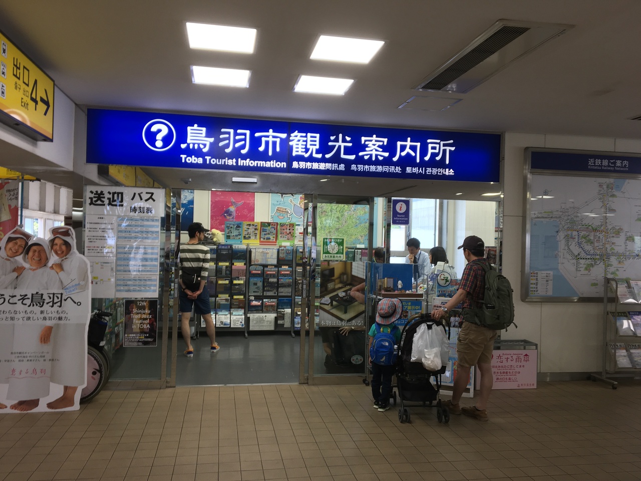 近鉄の鳥羽駅の改札口を出ると、すぐ右手に大きな表示もあり、わかりやすい立地です。パンフレット類も豊富で、菅島や答志島の島の散策路も載っているパンフレットももらえました。JRからだと、跨線橋に登って近鉄改札口に行くので、少しわかりにくいです。