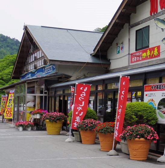 茶屋のよこに、最上川がながれ、窓から川の様子が見えます。川には、ヤナがあるのですが、魚がいるかは確認できませんでした。