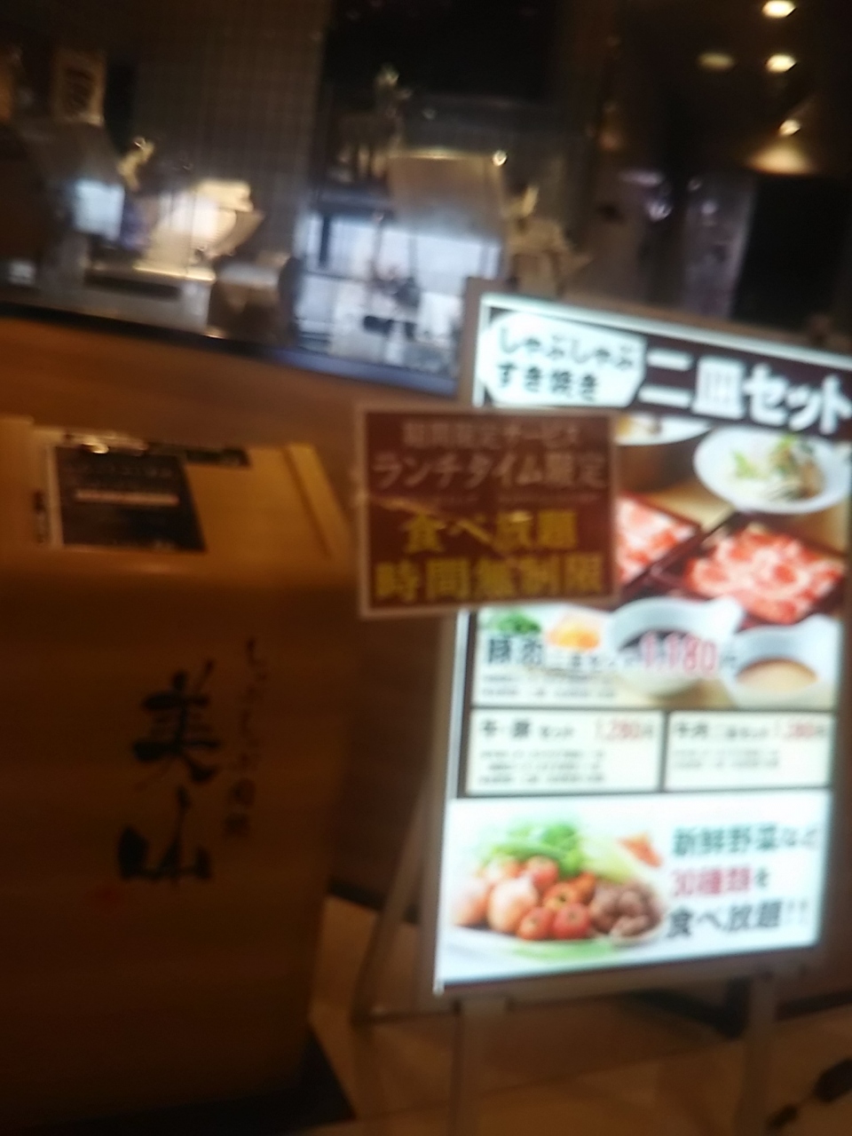 お店の中はとてもきれいでしゃぶしゃぶやすき焼きなどの食べ放題をやっている店ですがランチ時でも価格はとてもリーズナブルなのでたまに利用させていただいています 予めこちらで用事がある時には事前にお腹をすかしていき美味しい牛肉や豚肉をふんだんにいただきますが野菜などを食べ放題なのでヘルシーでいいです