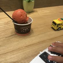 種類は多くないけど、シャーベットなどは変わったものが多くて、はちみつレモンやミカンなど。ベタなピスタチオやバニラももちろんありました。カップでもコーンでもシングルは380円でダブルは480円。味はまあ普通かなあ。