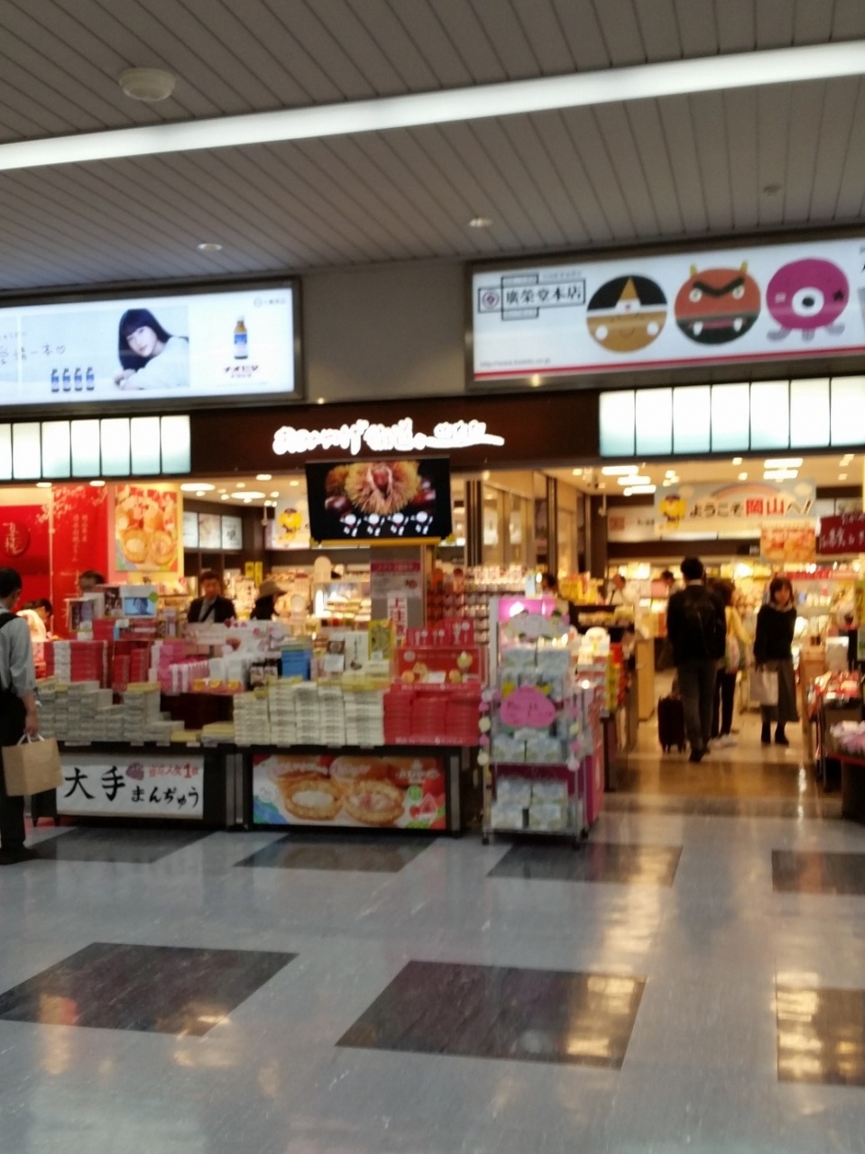 岡山の街を楽しみ、新幹線に乗る前にこちらの「おみやげ街道岡山」に立ち寄りました。お目当てはもちろん岡山名物の吉備団子。さすが本場というか色々な種類があって迷いました。他にも岡山を代表するフルーツである桃を使ったお菓子もあって、どれも美味しそうでした。新大阪にある「お土産街道」もそうですが、様々なジャンルのお土産が一か所で買えるので重宝します。