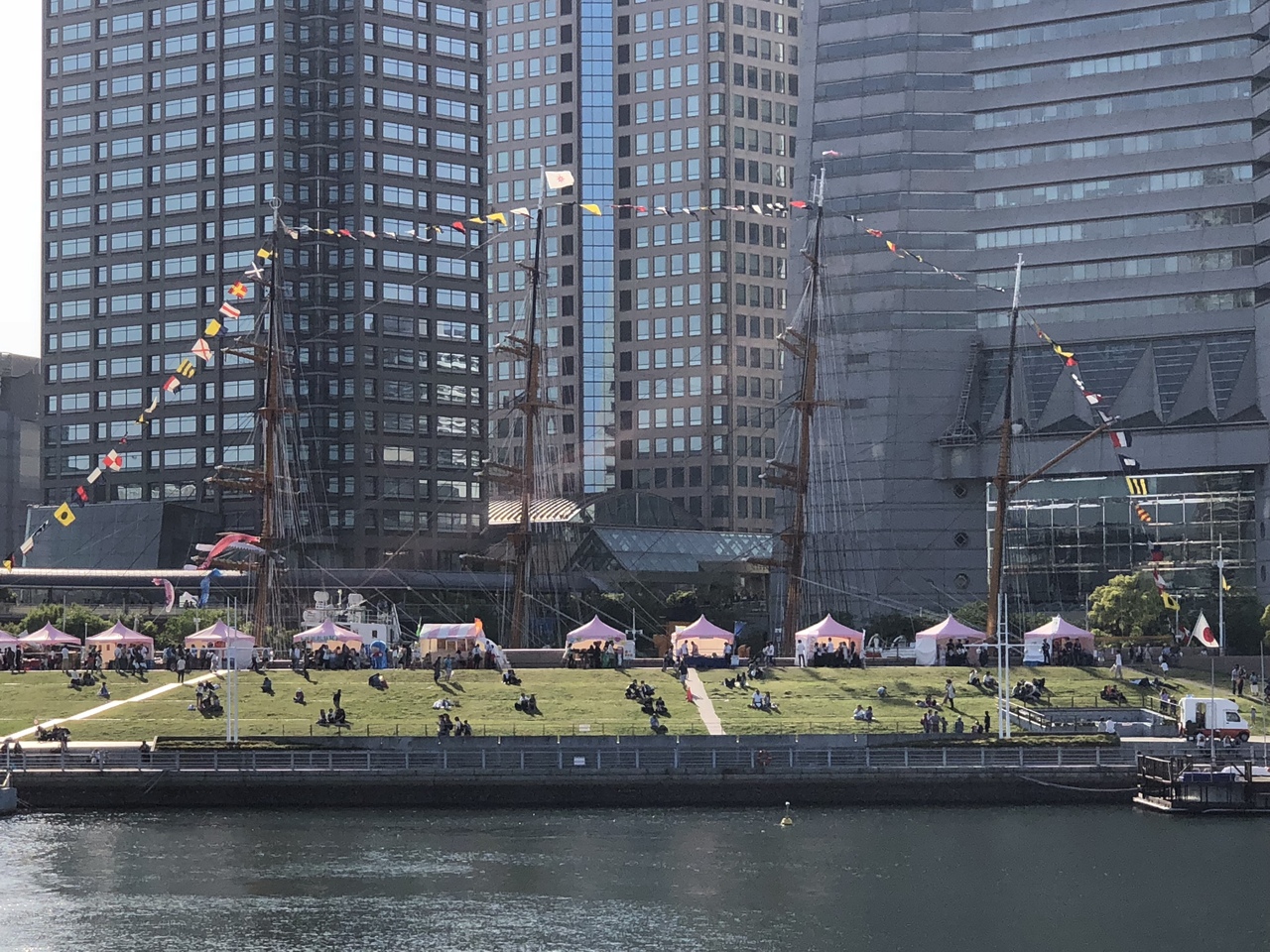 みなとみらいにある帆船「日本丸」に可愛らしい旗がひらひらと飾られていました。