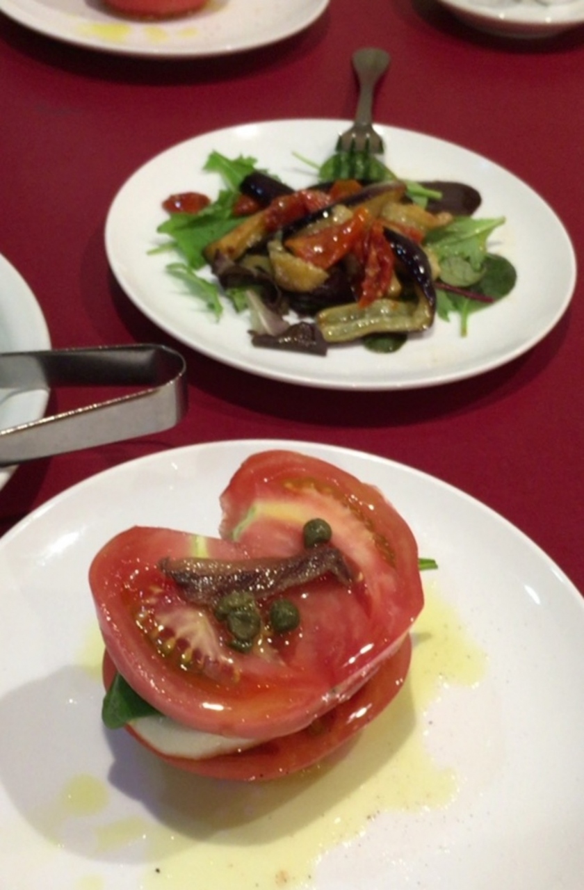 今回はサラダ、カプレーゼ、ピザ、パスタを注文。