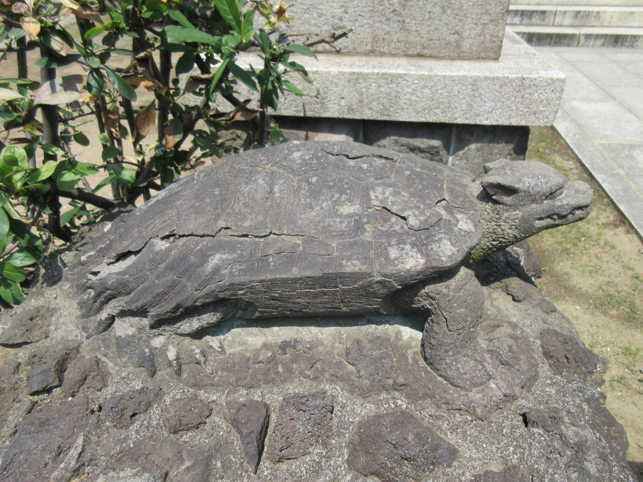 都営白髭東アパートと隅田川に挟まれたエリアに建つ、隅田川の総鎮守の神社です。かつては隅田川の終点に広がる水神の森と呼ばれるエリアに建っていたことから水神社と言われていました。160年程前に建てられた社殿の前には、牙が生えた、大きな耳を持った一対の狛亀が社殿を守っています。境内奥に建つ祠の中には、顔の部分が崩れた亀の像が安置されていました。狛犬ならぬ狛亀を初めて見たのでとても印象的でした。近くには、明治維新の際、大臣を歴任した榎本武揚像や梅若伝説が残る木母寺もあるので、併せて訪れるとより歴史が感じられると思います。