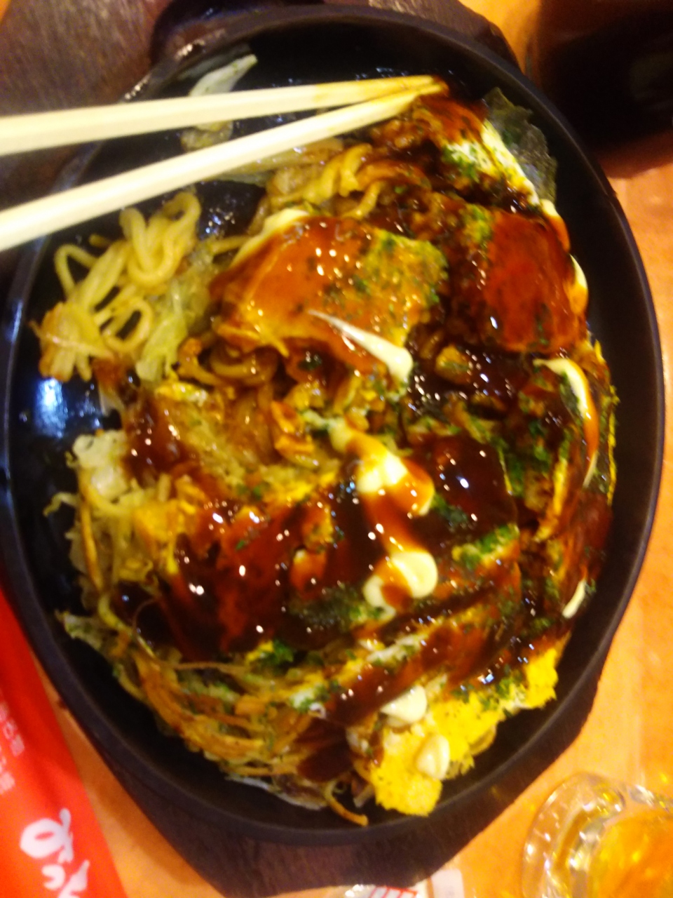 広島空港3階フードコート内にあるお好み焼き屋です。飛行機に乗って広島を去る前の、最後の広島の食事をおするために立ち寄りました。店内にも席がありますが、フードコート内の席の方は飛行機が見えておすすめです。注文を受けてから席まで運んでもらえます。