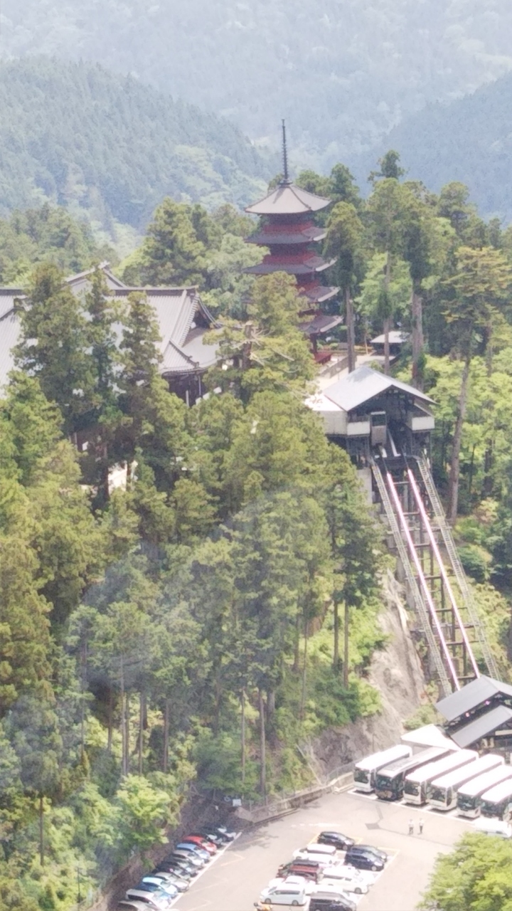 関東一の高低差763メートルをのぼるロープウェイは見晴らしが良かったです。駐車場の売店でもらった100円引き券を活用。20分間隔で運行していて、乗車時間は7分です。歩くと二時間半なので時短効果は絶大です。奥の院駅から富士山が見えました。