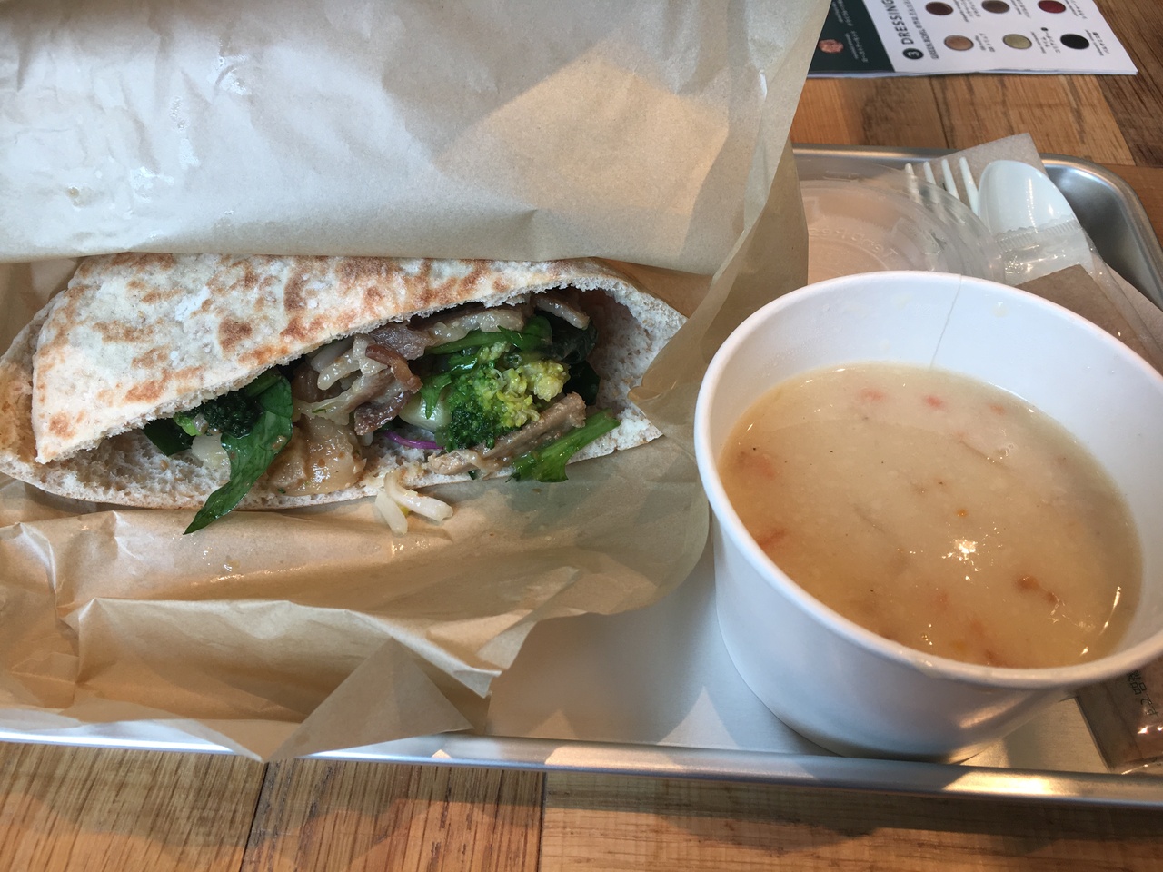 ヘルシーランチが食べたくて会社のそばの仙谷森アークヒルズにあるサラダのお店に行きました。入り口すぐです。いちごとカモが入ってるベリーズ&ダックも美味しそうでしたがピタが食べたい気分だったのでジンジャーポークピタ食べました。美味しかったです。